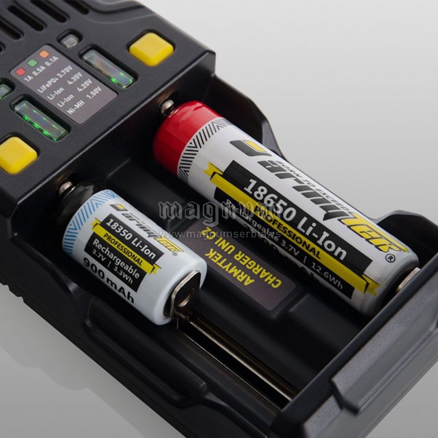 Univerzalni punjač Armytek Uni C2 podržava IMR, Li-Ion 4.2V, Li-Ion 4.35V, Ni-MH, Ni-Cd i Li-FePO4 baterije.