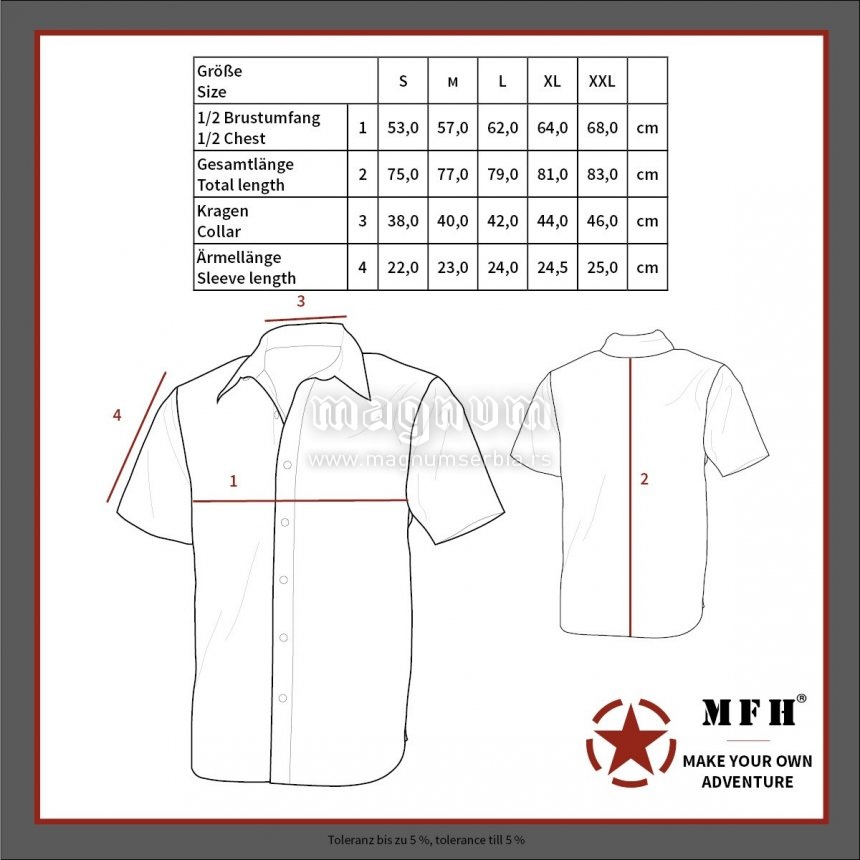 Košulja kratak rukav, dva džepa na grudima sa preklopom, dodatni elastični kaiš na levom džepu