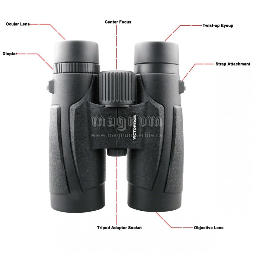 Dvogled Vector Optics Victoptics 10x42 BOSL-02, idealan za planinarenje, lov, ljubitelje prirode. Krovna prizma, izradjen od ojačanog poli karbonata, središnji fokus.