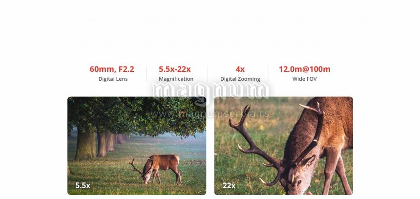 Kombinacija digitalnog detektora od 3840 × 2160 4K i laserskog daljinomera do 1000 metara pruža preciznost i detalje koji će vaše iskustvo posmatranja podići na viši nivo. Kompaktni dizajn i težina od samo 795 g čine ga idealnim za lov, posmatranje ptica i spasilačke misije.