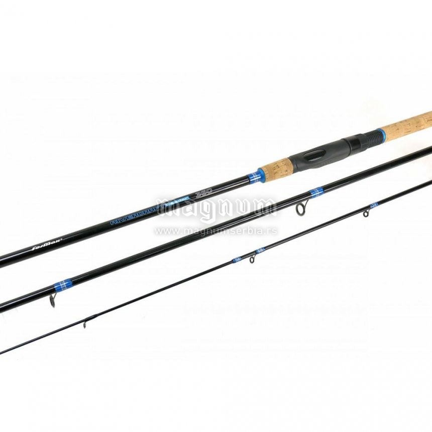 Prvoklasan feeder štap veoma vitkog blanka, lagan, izuzetne akcije, nastao na osnovu velikog iskustva naših test ribolovaca i takmičara Darka Todosijeviće i Saše Cuckića. Izrađen je od high modulus karbona i opremljen SiC provodnicima, specijalnim ergonomski oblikovanim navojnim držačem mašinice (kod kojeg prsti prilikom kontriranja ali i zamaranja ribe počivaju direktno na blanku tako da osetite svaki njen trzaj i pokret), a poseduje i dršku izrađenu u kombinaciji plute i EVA materijala, sa završetkom (kapom) od miksovane gume, kako se kraj drške ne bi oštećivao kada je spustite na zemlju. Model od 60-180g je najjači štap u ovoj seriji idealan za feeder ribolov na velikim rekama i jezerima i uz ovaj model se isporučuju tri izmenjiva vrha različite osetljivosti, sva tri od punog karbona (3.0 oz, 4.0 oz i 5.0 oz).