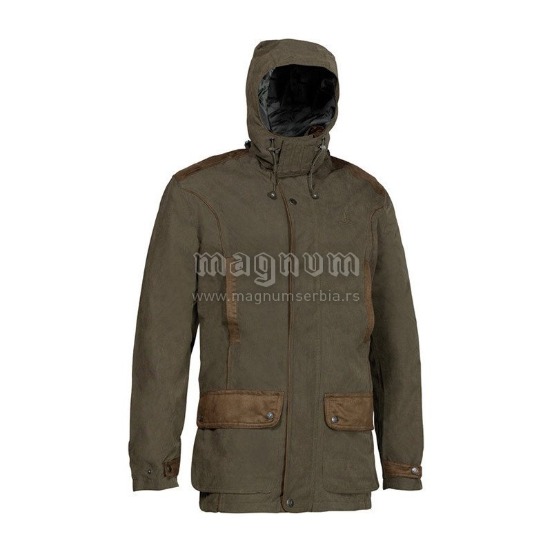 Percussion 13101 lovačka zimska jakna napravljena od najkvalitetnijih materijala.Napravljena je od poliestera sa prozračnom laminiranom membranom što je čini idealnom za lov i aktivnosti na otvorenom. Ojačana na ramenima i laktovima. Jakna se sastoji od 2 velika spoljna džepa sa dva reda integrisanih kaiševa za patrone, tri unutrašnja džepa, uključujući jedan za mobilni telefon. Kapuljača podesiva i odvojivaMaterijal: 65% poliester, 35% pamuk sa poliuretanskom membranom