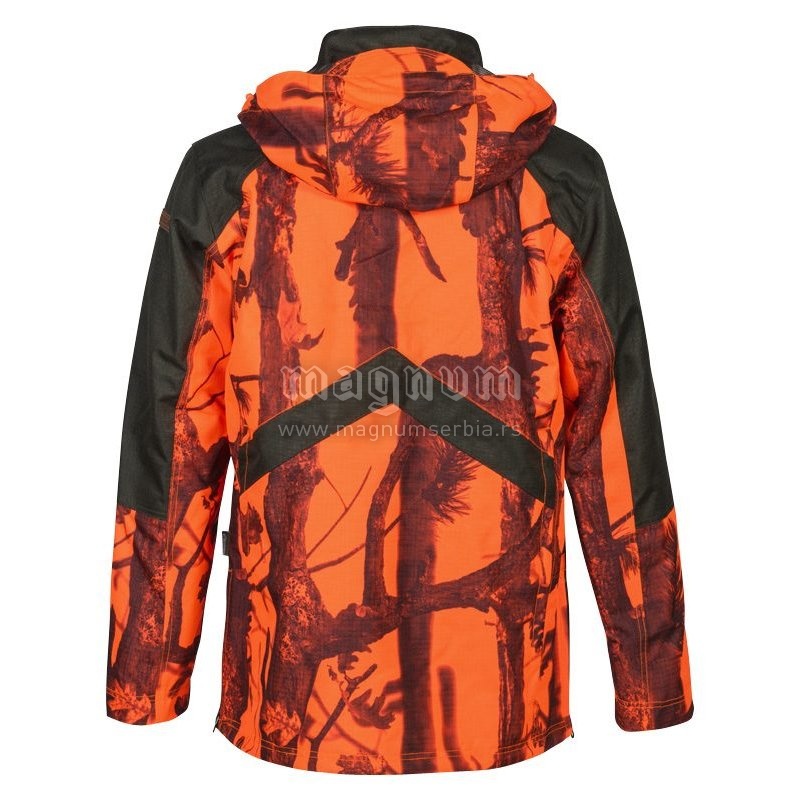 Ventilacioni patentni zatvarači ispod ruku, pojačanja za ramena, 1 džep na grudima sa patentnim zatvaračem, džepovi za ruke sa patentnim zatvaračem, 2 velika vodootporna donja džepa sa patentnim zatvaračem. 4 unutrašnja džepa uključujući 1 džep za narukvicu, podesivu i odvojivu kapuljaču, veliku torbu sa vodootpornom i perivom postavom, sa patentnim zatvaračem sa obe strane pozadi.
