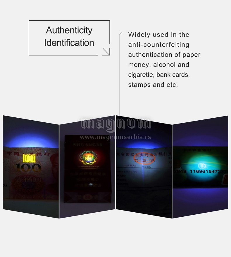 Jačina: 4 lm/ 60lm/ flashing/ 365 nm UV light