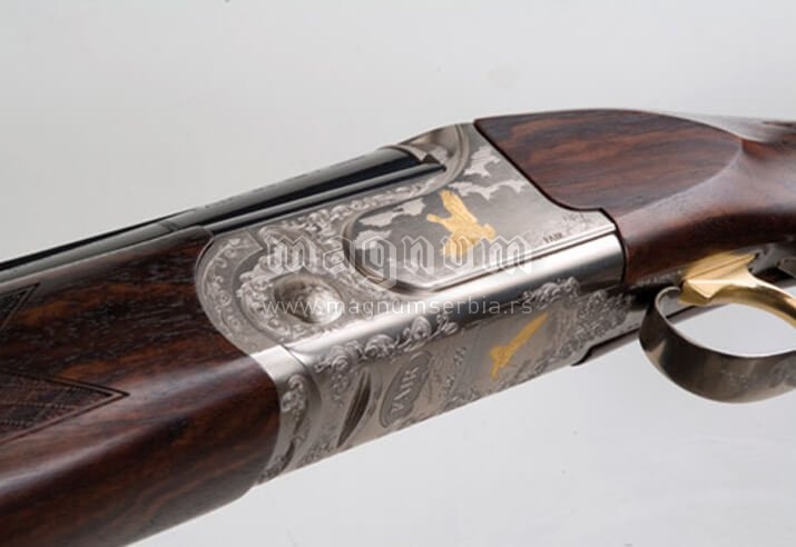 Nude se sa izbacivačem dugog hoda, zlatnim selektivnim jednostrukim okidačem, gumenim trzajnim jastučićem,zlatnim motivima.
