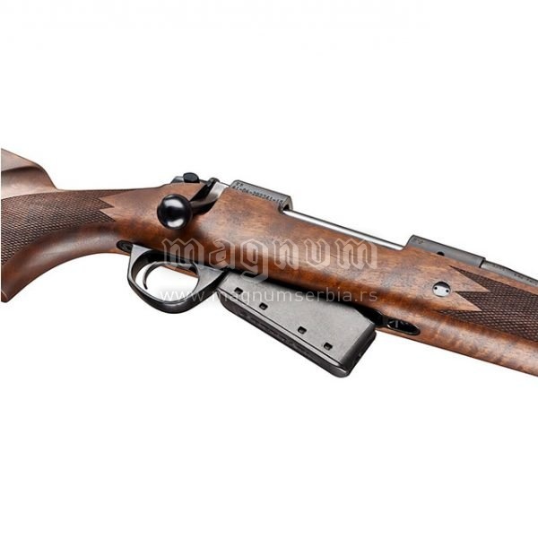 Bergara B14 Drvo je lovačka puška sa drvenim kundakom oraha, dostupna u širokom spektru kalibara. Bergara je poznata po svojim odličnim i pouzdanim cevima, a Timber model nije izuzetak. Brava radi glatko, a cela je nadopunjena odličnim mehanizmom okidača. Imate izbor između fiksnog ili odvojivog magacina za pušku.