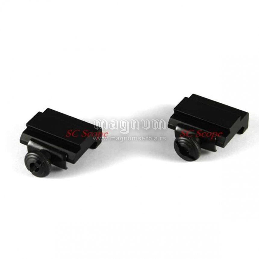 Adapter za šinu 11mm na Weaver 21mm,dužine 30mm, visine 10mm i težine 50 gr. Izradjen od aluminijumske legure visoke izdržljivosti u crnoj mat boji. Otporan na udarce