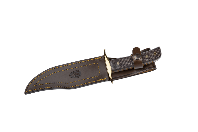 Drška noža je od jute mikarte, što ga čini još privlačnijim. Ovaj materijal ne samo da se oseća bezbedno i udobno u ruci, već je i posebno izdržljiv i otporan na uticaje okoline. Zaštita od mesinga naglašava estetiku noža i istovremeno nudi dodatnu zaštitu za ruke prilikom upotrebe.
