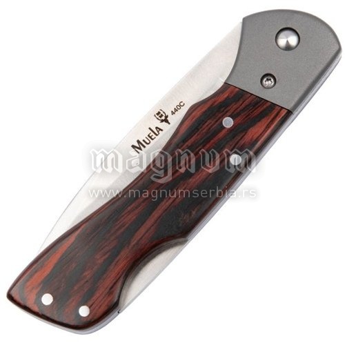 Muela džepni nož sa oštricom od čelika 440C dužine 8,5 cm. Drška od presovanog drveta od korala .