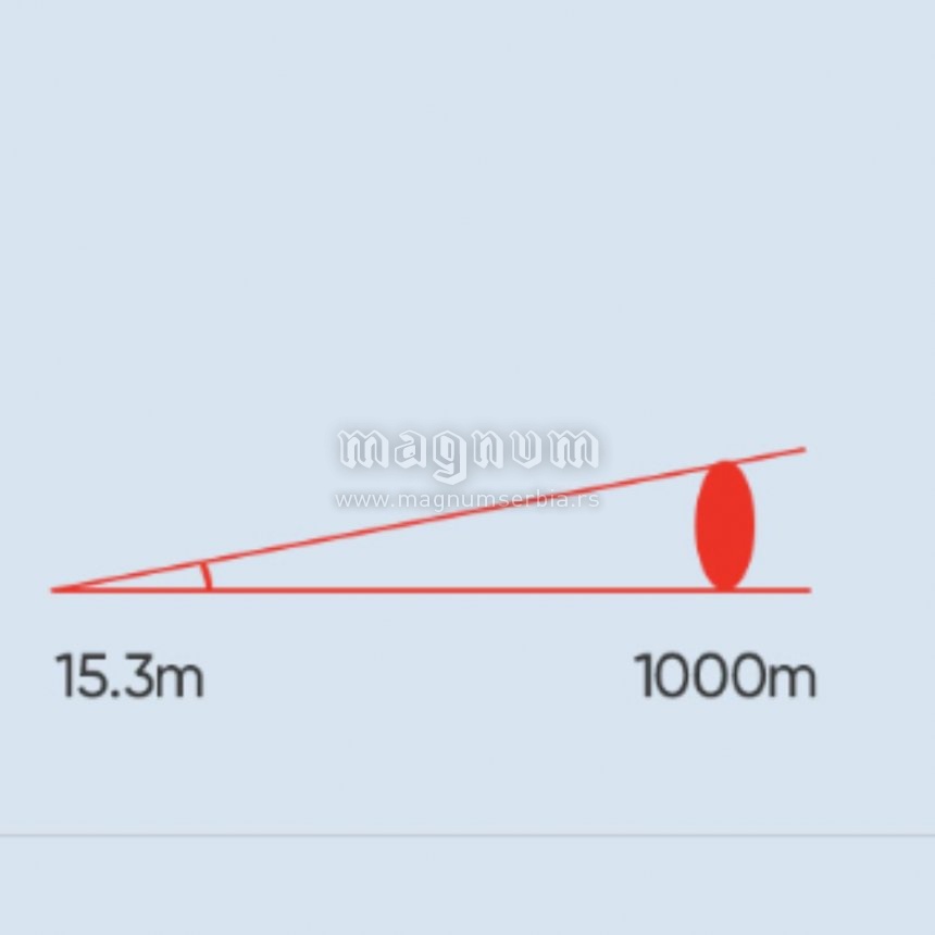 Vidno polje: 8.8° × 5.0° / 15.3 m × 8.6 m na 100 m