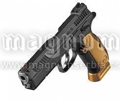 Odsustvo automatske blokade na zatvaraču smanjuje broj komponenti i, po preporuci iz fabrike, dodatno poboljšava kvalitet okidanja (koji je već poboljšan u odnosu na tradicionalni ČZ). Ram je dugačak i ima skoro 700 g, pa povećava težinu oružja i centar za ravnotežu čini preciznijim. Dust cover ima vođice za instalaciju dodatne opreme za nišanjenje, ali samo jedan poprečni žleb za zaustavljanje – umesto tri, kao na prethodnom modelu – kako bi ram bio maksimalno funkcionalan. Proširene rupe za šrafove omogućavaju visoko pozicioniranje ruku, na spoju branika sa dust coverom i prednjim delom drške. Sam branik okidača sada je širi, sa pljosnatijim prednjim delom i pažljivo izgraviranim žlebovima. Kao što smo napomenuli na početku teksta, prednje i zadnje čekirane površine na dršci pružaju dobar hvat. Ponekad se mogu čuti žalbe na agresivno čekirane površine, ali prioritet je da pištolj bude siguran u rukama – bar je finije čekiran u odnosu na liniju Tactical Sports, takođe iz fabrike CZ. Rukohvati su od supertankog aluminijuma boje pepela i pružaju dobar grip. Dugme za vađenje okvira udobno je i lako dostupno – dovoljno je samo normalno ga pritisnuti.