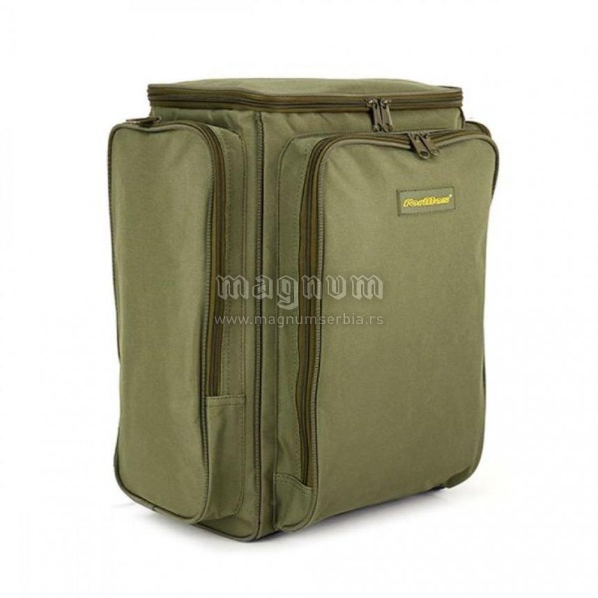 Ranac kvadratnog oblika i dimenzija 45x40x20cm, sa puno smeštajnog prostora u sredini i velikim trodimenzionalnim džepovima sa prednje strane i na bokovima.