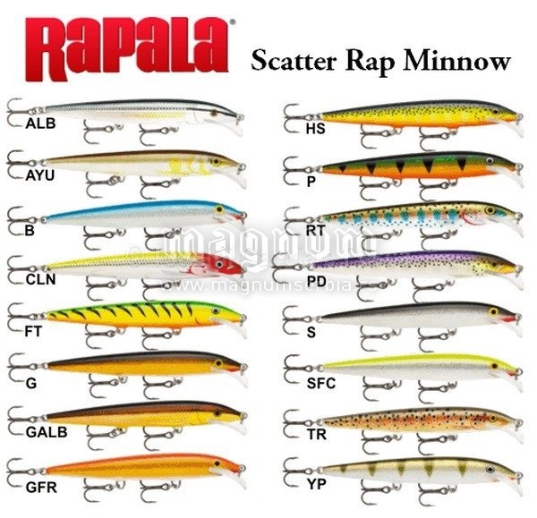 Ovaj klasični oblik Rapale ima graciozno, prirodno klapanje za finu taktiku, ali je i dovoljno osetljiv da se može agresivno loviti. Ribe mamac skaču i razbacuju se kada ih progone grabljivice - ova nestalna i izbegavajuća akcija izaziva napad. Napravljen od balse, sa prilagođenom Scatter Lip-om, Scatter Rap® Minnov dosledno pliva sa nestalnim i izbegavajućim pokretima - savršeno oponašajući ranjivu ribu mamac. Bacano ili trolovano, savršen je izbor za bilo koju vrstu ribe.