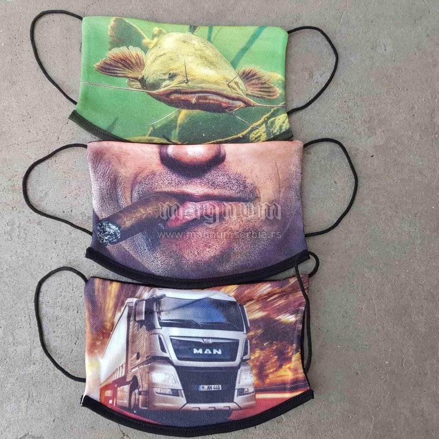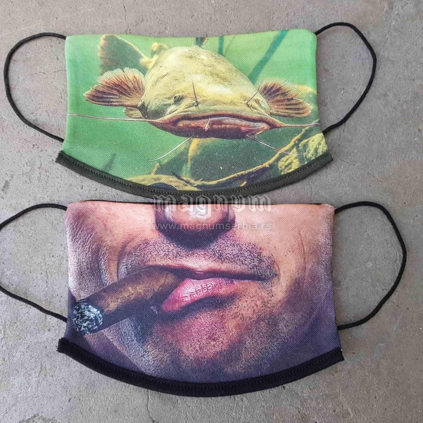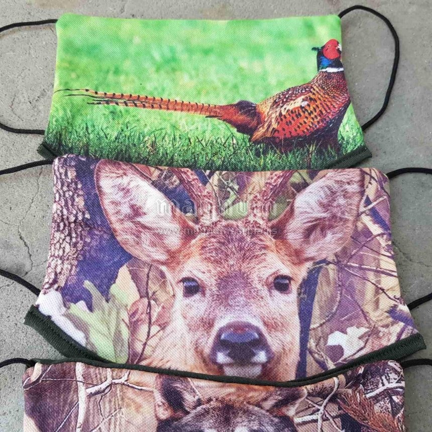 Maska je sa štampom: vuk, riba, divlja svinja, srndać, fazan...