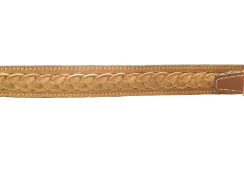 Kožni remnik za lovačku pušku, izrađen od prirodne kože sa sigurnim metalnim krajevima za kačenje.