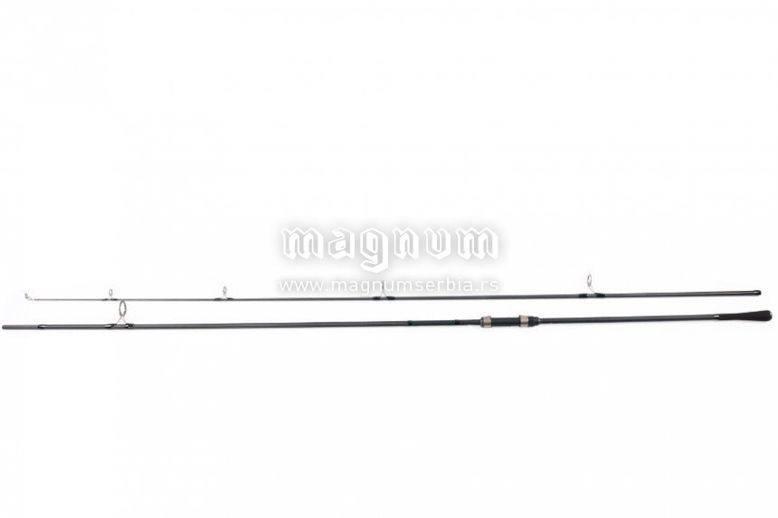 Dvodelni šaranski štap izrađen od HM karbona izuzetno lagan i snažan, idealan za daleke zabačaje. Opremljen kvalitetnim provodnicima, navojnim držačem mašinice i rukohvatom od EVA materijala.
