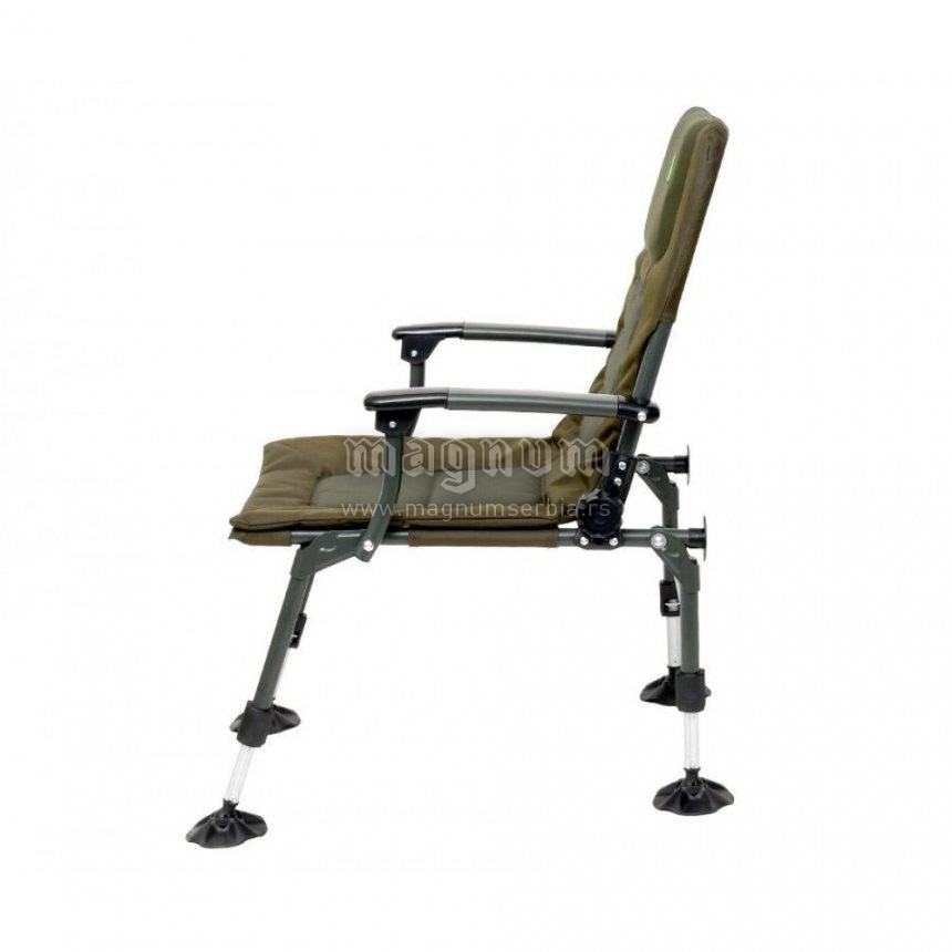 Carp Pro Torus – sklopiva šaranska stolica, koja garantuje visok nivo udobnosti.Zbog upotrebe ojačanog čeličnog okvira, stolica može lako izdržati opterećenja do 120 kg. Zahvaljujući integrisanom naslonu za glavu i mekim umetcima na sedištu i naslonu, telo zauzima prirodan položaj, što doprinosi dugotrajnom i udobnom ribolovu.