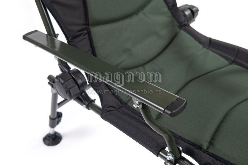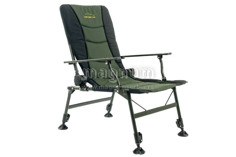 Šaranska Grey Line stolica, namenjena svim ljubiteljima šaranskog i feeder ribolova, kao i onima koji vole duže boravke u prirodi. Odlikuje je velika stabilnost i udobnost. Naslon se može oboriti do horizontalnog položaja. Stolica poseduje veoma jak i pouzdan sistem za podešavanje naslona. Platno stolice je veoma jako i kvalitetno. Veoma je se lako održava i čisti. Poseduje teleskopske noge, koje će pomoći da stolicu postavite na različitim terenima. Stope na nogama su široke tako da će sprečiti propadanje stolice u meko tlo. Stolica se može u potpunosti sklopiti, tako da će u vašem priboru zauzeti veoma malo prostora.