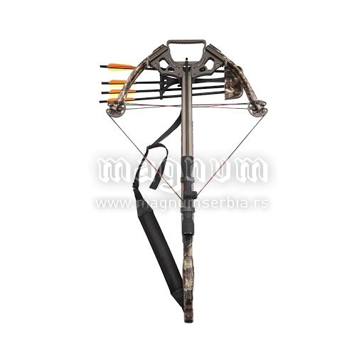 GADJANJE: Otkočiti samosterl, gurnuti napred deo gde ulazi tetiva u samostrel, nišaniti u metu i povući obarač. Nišan je fabrički podešen i ne preporučuje se dirati ga.