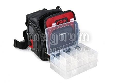 Varaličarska torba dimenzija 25x11x27 cm koja se nosi na grudima, opremljena sa 2 providne kutije dimenzija 20x13x4 cm. Poseduje trodimenzionalni džep napred, 2 džepa na bokovima, 2 dvodimenzionalna džepa u unutrašnjosti, mrežasti džep napred i ležište sa čičak trakom za alatku.
