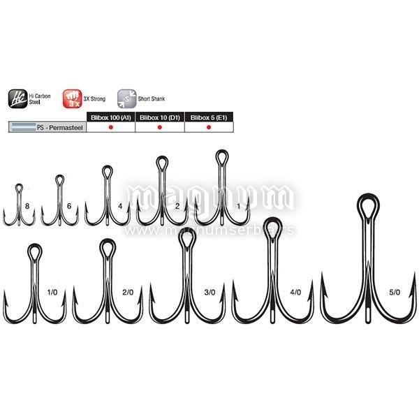 Jedna od najpopularnijih trokraka na našim prostorima u BZ (bronzanom) finišu, izuzetne jačine -3 X strong. Za najmanje para dobijate najbolji kvalitet.Bronzana,kratak vrat,izuetno jaka i otporna na otvaranje. Udica broj jedan za somovske varalice - glavinjare , voblere , kašike . Najčešće korišćena trokraka na glavinjarama . Veličine: 2,4,6,8