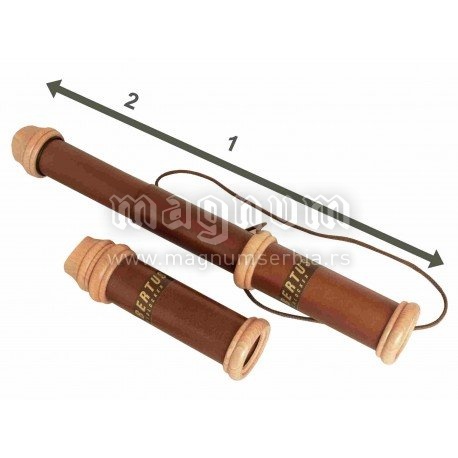 Sadrži kaiš za nošenje, usnik od drveta, telo cevi od specijalnog materijala