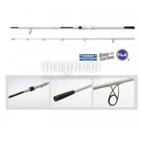 Snažan dvodelni varaličarski štap namenjen za ribolov soma. Blank štapa je dovoljno oštar da omogući munjevitu kontru i pravilno kačenje ribe. Osim velike snage ovaj štap krasi i odličan balans pa je sa njim moguće loviti čitav dan bez prevelikog opterećenja. Napravljen je od 30Toray karbona a opremljen je sa Fuji držačem mašinice i SeaGuide® provodnicima.