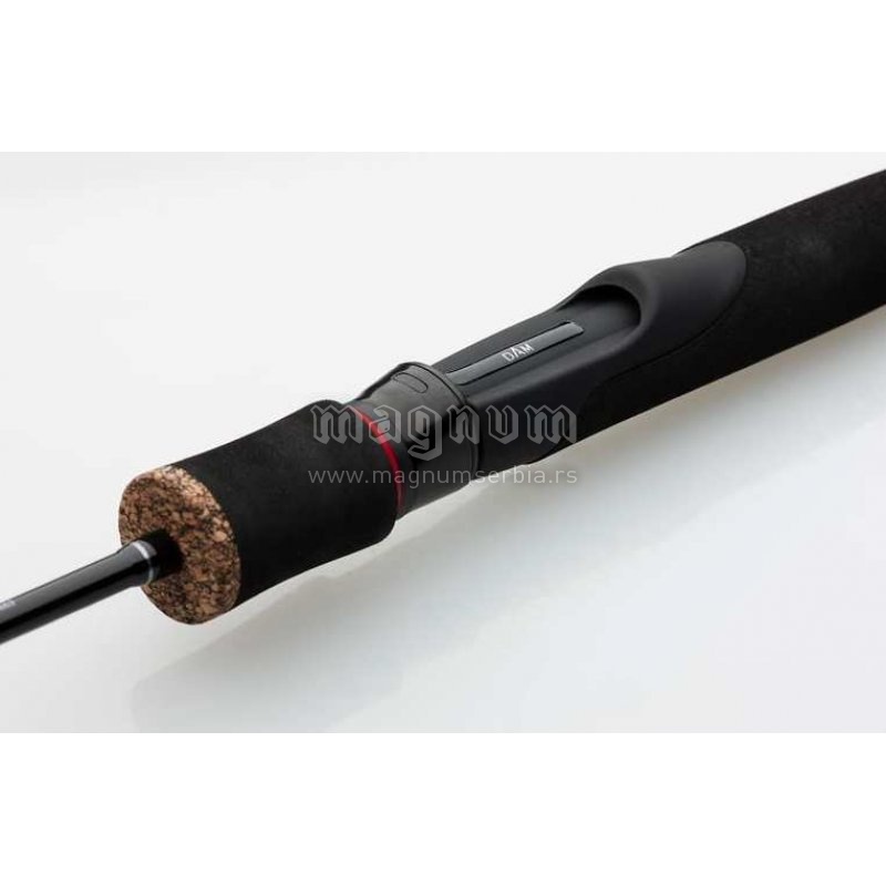 Dvodelni varaličarski štap kog krasi izuzetno mala težina i moderan dizajn, idealan za ultra lako varaličarenje, kao i za ribolov pastrmke i klena na planinskim rekama. Blank štapa je napravljen od IM-8 karbona i ima poluparaboličnu akciju, a nasuprot maloj težini ima zavidnu rezervu snage pa će bez problema izaći na kraj sa krupnom ribom ako se ona nađe na drugom kraju strune. Pun karbonski vrh štapa obezbeđuje besprekornu detekciju trzaja i omogućava zabačaje zavidne daljine čak i sa laganim varalicama. Opremljen je sa K-frame provodnicima i micro provodnicima, plutanom drškom vrhunskog kvaliteta, a na dnu drške je laserski graviran poklopac.