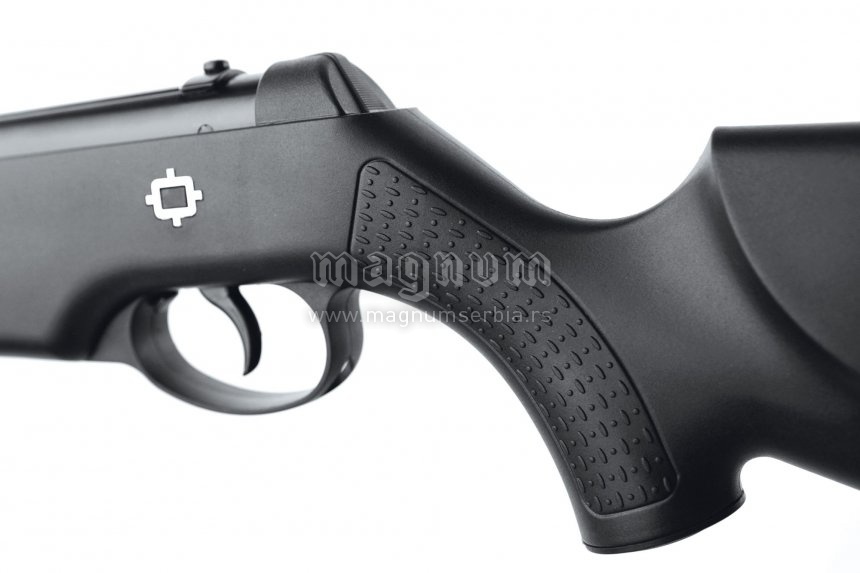 Vazdušna puška sa oprugom, modernog dizajna od PVC-a sa svetlećim prednjim i zadnjim nišanom, automatskom kočnicom.