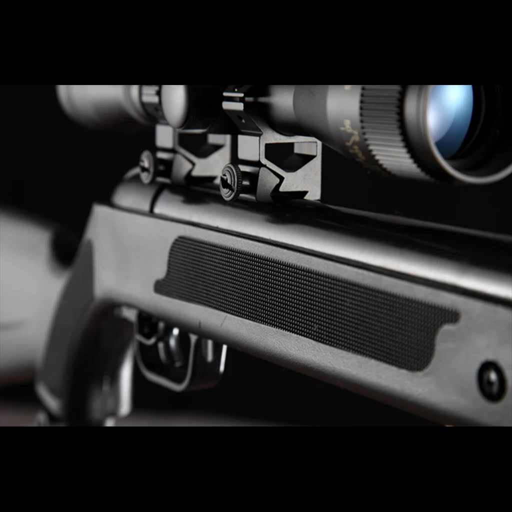 Prednji nišan je zaštićen plastikom. Horizontalno i vertikalno podešavanje je vrlo precizno. Puška je opremljena nažlebljenom cevi, tako da preporučujemo korišćenje samo olovnih dijabola.